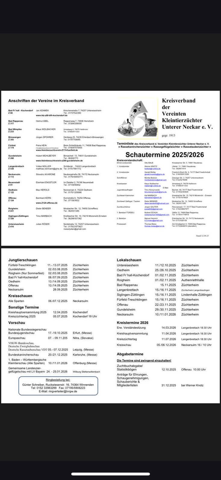 Versammlung: Sa., 08.11.2025 um 20 Uhr im Züchterheim